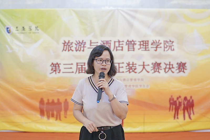 吴小柳老师讲到,举办最美正装大赛的目的是通过比赛审视自己自身的不足,不断学习新的知识以此提升自身,希望同学不仅仅是舞台上展示自信,以后的人生无论何时何地都要脸上扬着微笑,骨子里透着坚强。