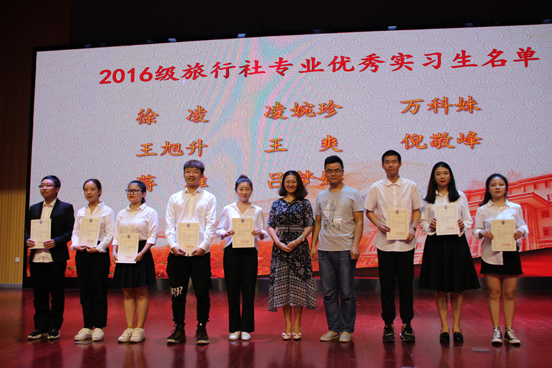 副经理郜宣宣读旅游嘉年华专业系列活动获奖、2016级优秀实习生名单