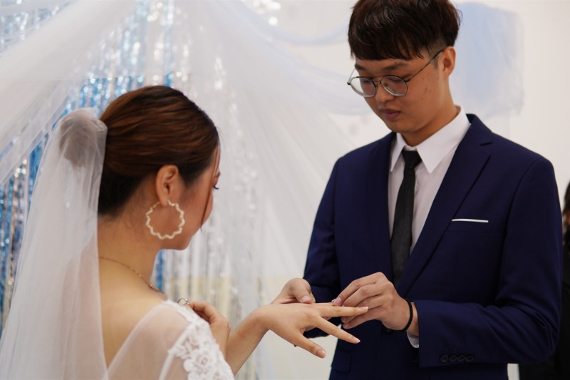 新郎为新娘戴上婚戒