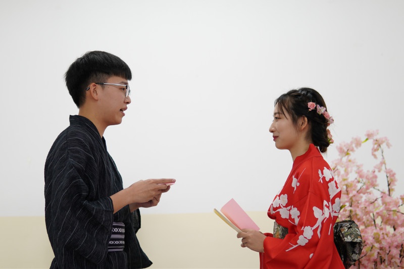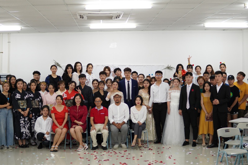 本次课程采用婚礼现场模拟的形式,让会展班同学于在校期间提前了解会展服务工作的主要内容和行事规范,同学通过课上、课下的讨论及筹备自行开展策划,最终将结果展示在老师和专职从业领导的面前。本次婚礼表演主题共分为四组,有唯美的《觅》、富有创意的《绝地奇缘,狙击你心》、浪漫的《五年之约WE ARE WEDDING》和感动的《年华&热烈》。