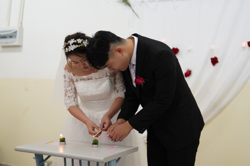 新郎新娘共点喜烛