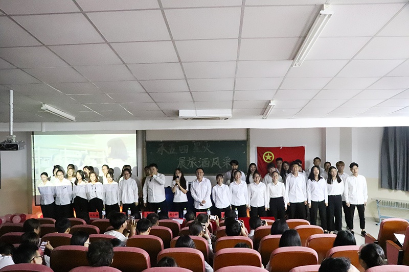 会议最后,一段包含王翔书记、吴小柳老师及高年级员工干部对后辈寄语的小视频以及员工干部深情朗诵的《五四的焰火》,流露了他们对旅酒学子的美好祝愿以及对五四精神的热情赞颂。大会尾声,团委全体成员合唱歌曲《夜空中最亮的星》。相信在每位旅酒学子的共同努力之下,金沙js5588这个大家庭能够蒸蒸日上,一路繁花似锦,最终能够像繁星一样璀璨夺目。
