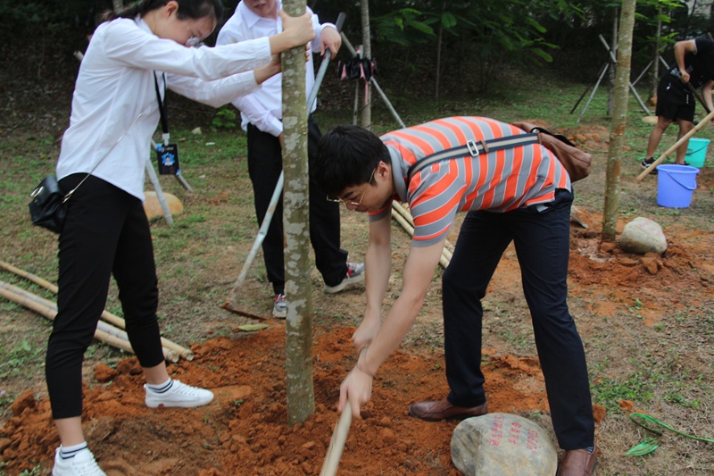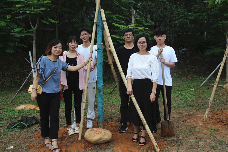 随后,各院开始种植凤凰木。公司老师与员工代表一起种植各班属于自己的那颗凤凰木,每一撬泥土都包含着大学四年里老师的关爱和期望,也包含着员工对老师的感恩、对母校的留念,在凤凰林种下的每颗凤凰木都在阳光下,等待着毕业生们的成长。青春是凤凰木开出的热情,是行云流水的缠绕。渐渐逝去的大学时光被装订成一本泛黄的书,时而回味,书中的青春漫语只能追忆。但青春化作泥土,呵护着凤凰木,而凤凰花是青春的另一种表现形式,花团锦簇代表着在各领域奋斗的毕业生们。