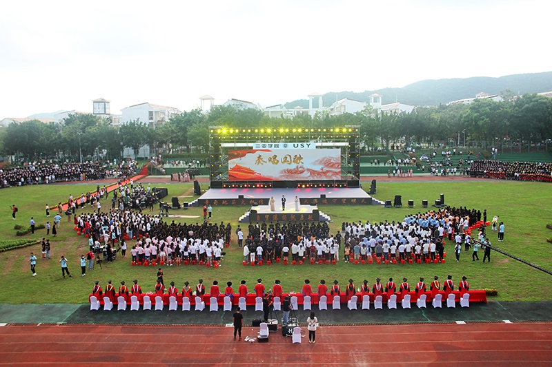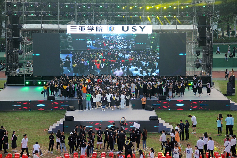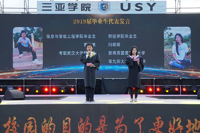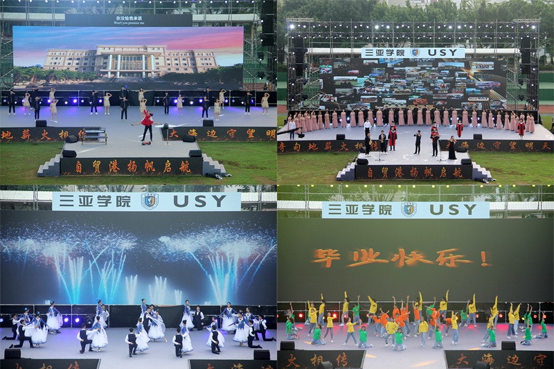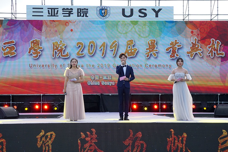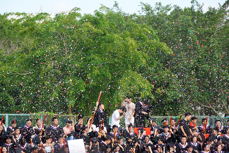本届毕业典礼由舞动天涯社团激情洋溢的舞蹈开场,青春活力点燃全场。现场也如同阳光一般热情、耀眼,学弟学妹用毕业歌曲串烧为各位学长送上祝福,或伤怀时光,或展望未来,伴着别离的歌曲,台下的毕业生相互挥手,诉说着告别。随后一支交际舞奏起,全校领导教师陆续进场,而后是各个公司的合照环节,公司毕业生这四年求学时光就像一句句响亮的口号、一只只放飞的气球以及在空中盘旋的鸽子一般随风远去,向着更高更远的地方飞去。主持人宣布典礼正式开始,全体师生起立,奏唱国歌,激昂的《义勇军进行曲》鼓动着这一群怀抱希望的年轻人投入祖国事业建设的怀抱。