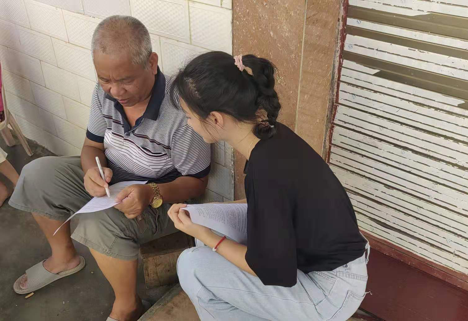 村民填写问卷调查表