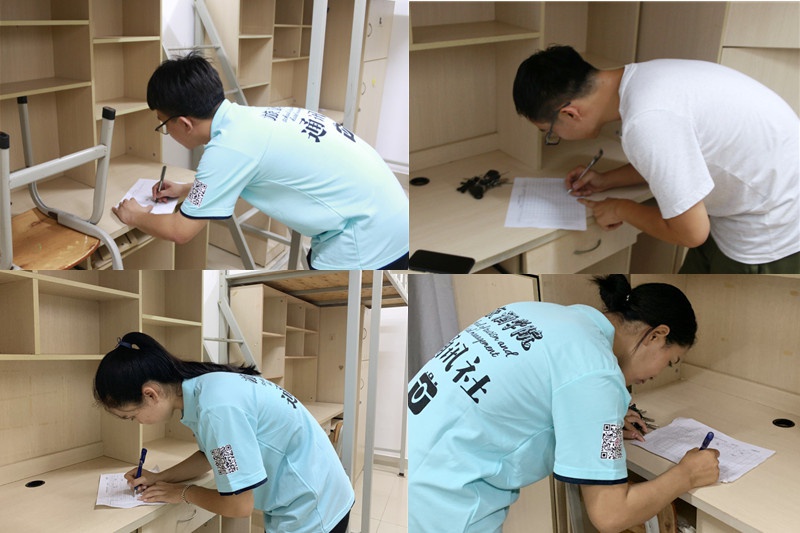 公司新生宿舍主要分布在南区,共125间,男生宿舍主要分布在南五、南七,女生宿舍分布于南三、南四和南六。由于新生宿舍分布较为分散,李琴老师将志愿者们分为男女两队、每队以两人为一小组挨个检查室内各项设施,要求志愿者们细心、耐心检查,力求做到细致入微。刘文琦老师和李琴老师分别深入对男女宿舍进行有序排查,从进门到阳台的所有设施仔细察看并做好相关记录,旨在及时、准确的上报公司后勤部,并得到及时维修、解决相关问题。