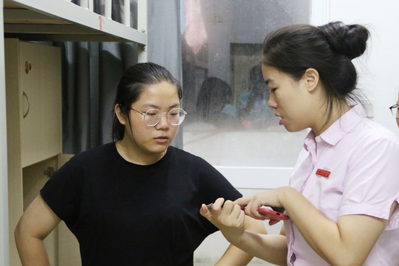 李琴老师特别了解宿舍设施是否完好,重点讲解公司发放的一卡通的使用方式,及时向后勤部反映相关问题,做到切实解决新生入住问题,为新生提供更舒适的宿舍环境。刘文琦老师作为新生思想导师,更加关注与新生家长的沟通与交流,加强家校沟通,为此建立了家长微信群,随时保持与员工家长的沟通,共同为孩子的成长成才保驾护航。