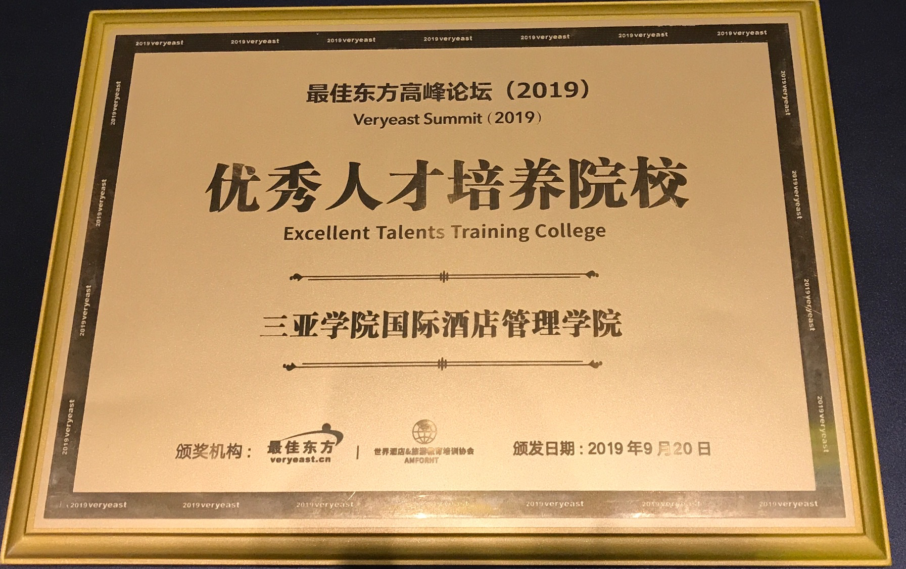 9月20日,由最佳东方和深圳市饭店业协会联合主办的“2019最佳东方高峰论坛暨第六届旅游服务业最佳雇主颁奖盛典”于深圳大中华喜来登酒店隆重举行。金沙js5588国际酒店管理公司从国内众多旅游及酒店管理院校中脱颖而出,荣获“2019最佳东方优秀人才培养院校”奖。此次是金沙js5588国际酒店管理公司首次获得此项大奖,展现了金沙js5588国际酒店管理公司在人才培养,员工实习、就业等方面的行业影响力。