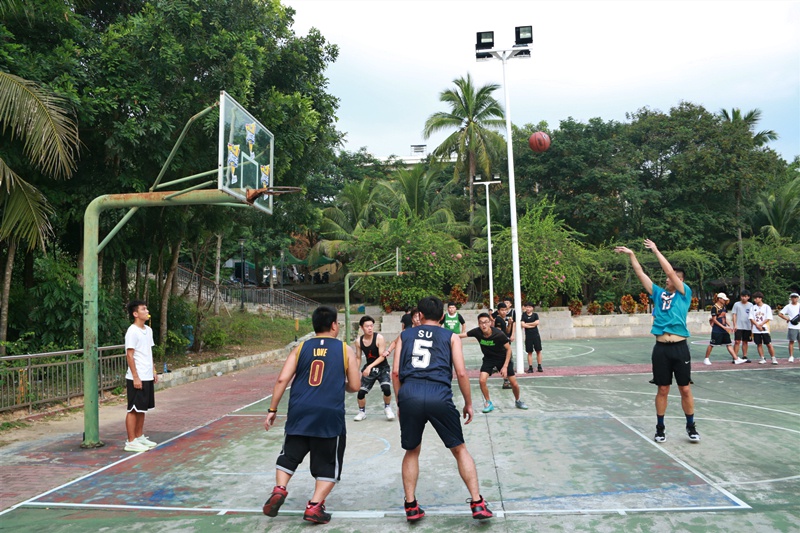 随后在18时30分进行友谊赛的是19级酒店、旅游专升本联合与18级酒店、国旅联合。19级新生带着新生代独有的激情与活力,对抗着18级球员间娴熟的配合。双方拼抢十分激烈,带球、运球、投篮等一系列动作潇洒、规范,将所学技巧发挥的淋漓尽致,成为篮球场上亮丽的风景线,引起场外观看比赛的员工阵阵喝彩。最终,18级球员以4分惜败于19级新生,后浪终将超越前浪,带给人意料之外的惊喜。
