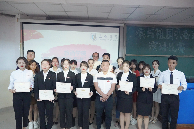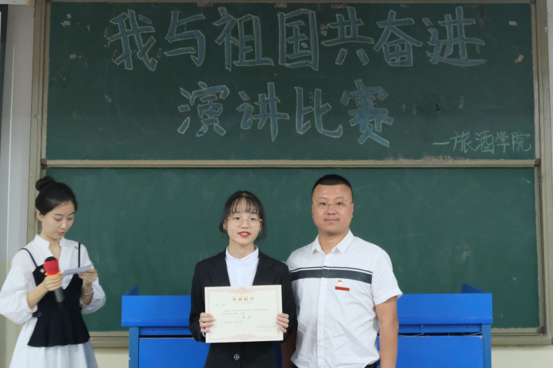 经过评分核算、结合选手们的综合表现,最终公司酒店1902班的金碧茹同学荣获此次演讲比赛第一名,评委老师们依次为获奖选手们颁奖,比赛最终在我们的大合影中、在热闹和谐的氛围中圆满结束。
