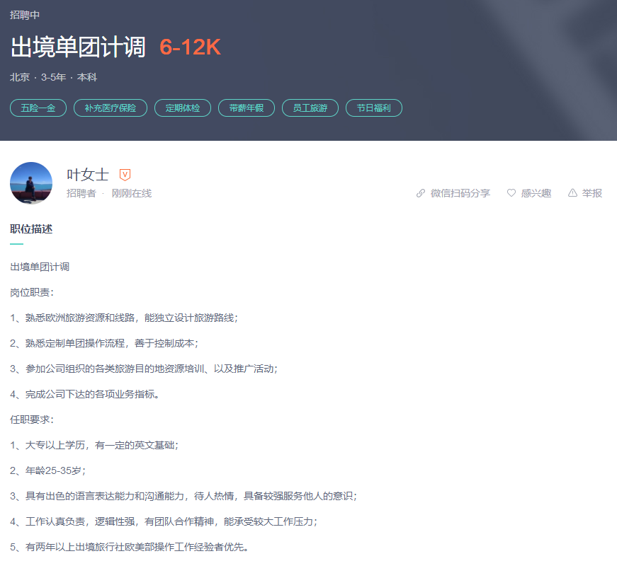 凯撒旅游出境单团计调