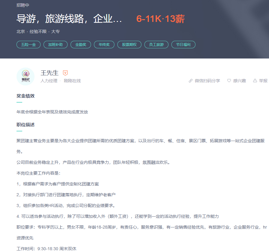 北京聚游记文化传播有限公司导游,旅游路线,企业服务,销售经理
