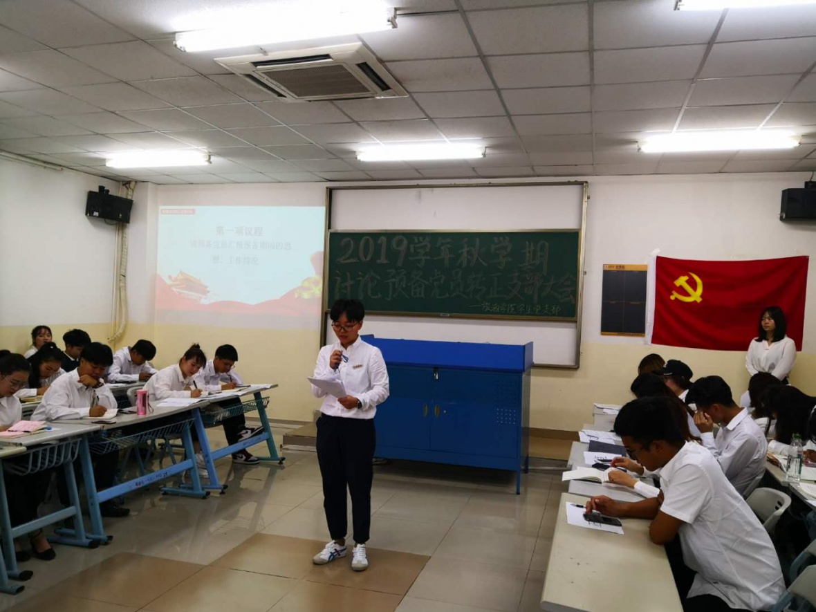 会议第二项,主要讨论是否批准发展对象张姣、甄玉琰、倪敬峰等共二十名发展对象发展为中共预备党员的问题。首先,思想导师石玲介绍各发展对象基本情况,确定他们作为考察培养对象的时间。然后,发展对象向大会逐一宣读《入党申请书》,他们认真,严肃,而庄重。接着,由发展对象培养人就其优缺点介绍他们于考察期间的情况,与会党员对培养考察对象发表想法与建议。随后,大会组织对培养考察对象进行无记名投票表决,通过了张姣、甄玉琰、倪敬峰等二十名同志发展为中共预备党员的决议。