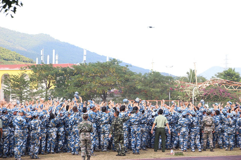 大一军训结束后向无人机挥手记录他们快乐的瞬间