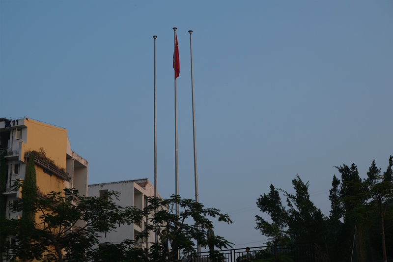 纵使寒风凛冽,公司学子们依旧精神抖擞,队列整齐划一。慷慨激昂的国歌奏响,五星红旗随着旋律徐徐上升,迎着朝阳摇曳飘荡,面对着这庄严肃穆的一刻,同学们全体肃立,唱响国歌,行注目礼。