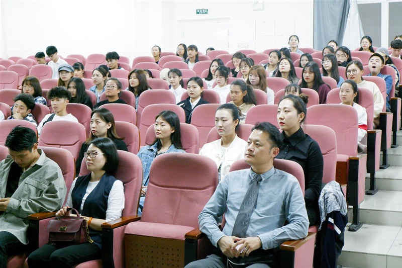 游艇会与游艇酒店行政与人力资源部负责人张欢女士播放了海天盛筵十周年的视频并简略讲解了企业的发展历程。随后,由游艇酒店餐饮部总监杨洋先生,名品公司负责人黄雅莉女士、李开远先生以及游艇酒店人事主管李书萱女士分别进行自己部门工作的相关讲解,包括招聘要求、工作内容以及志愿者在这些岗位上的收获。