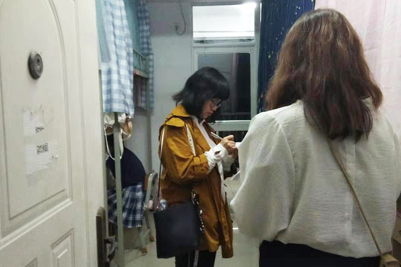 5S指整理“SEIRI”、整顿“SEITON”、清扫“SEISO”、清洁“SETKETSU”、素养“SHITSUKE”。吴小柳书记从南六大一女生寝室的内务整理、主题设计、门面装饰等方面进行考察及打分,并对第一轮走访入选的优秀寝室进行复查。检查途中,面对员工寝室的门窗安全、电灯损坏问题,吴小柳书记耐心对员工进行引导、登记。相关寝室都做到了卫生干净、细节布置到位,很多寝室也都装饰出了自己的个性。最后,吴小柳书记指出了一些寝室的不足并对其进行指导改正,表示期待其下次的改进。