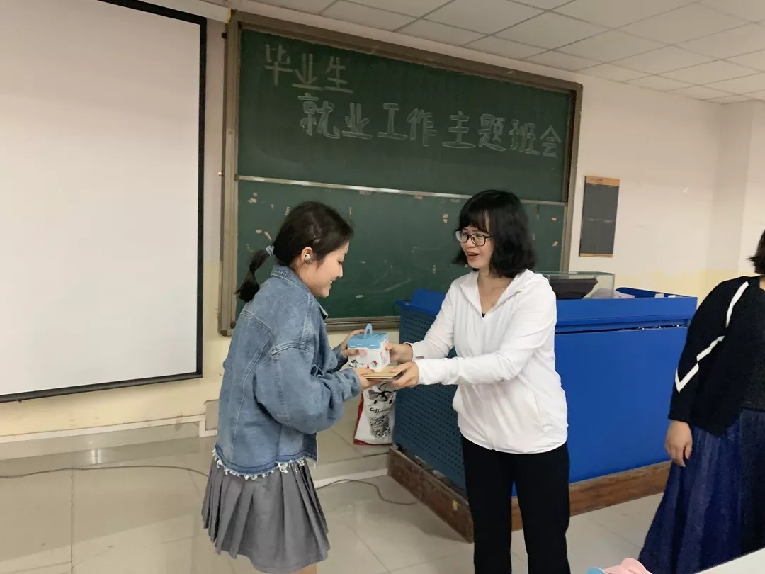 12月18日上午,由公司团委副书记吴小柳老师在1208教室开展了一场以毕业生就业工作为主题的班会,并为即将考研的学长学姐们送上祝福和爱心小礼物。吴小柳老师表示星光不负赶路人,时光不付有心人。不是所有坚持都有结果,但总有一些坚持,能从一寸冰封的土地里,培育出十万朵怒放的蔷薇。