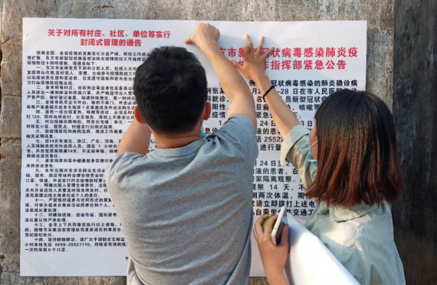 为响应习近平总书记“社区是疫情联防联控的第一线”的号召,公司返乡老员工主动请战,参与疫情防控。自1月31日起,于海南省东方市东河镇玉龙村中,在东河镇主席、玉龙村领导及其干部带领下开展为期16天的疫情防控活动,现已圆满完成。包括公司旅游管理1803班符桂英同学在内的玉龙村老员工志愿者们积极配合参与。