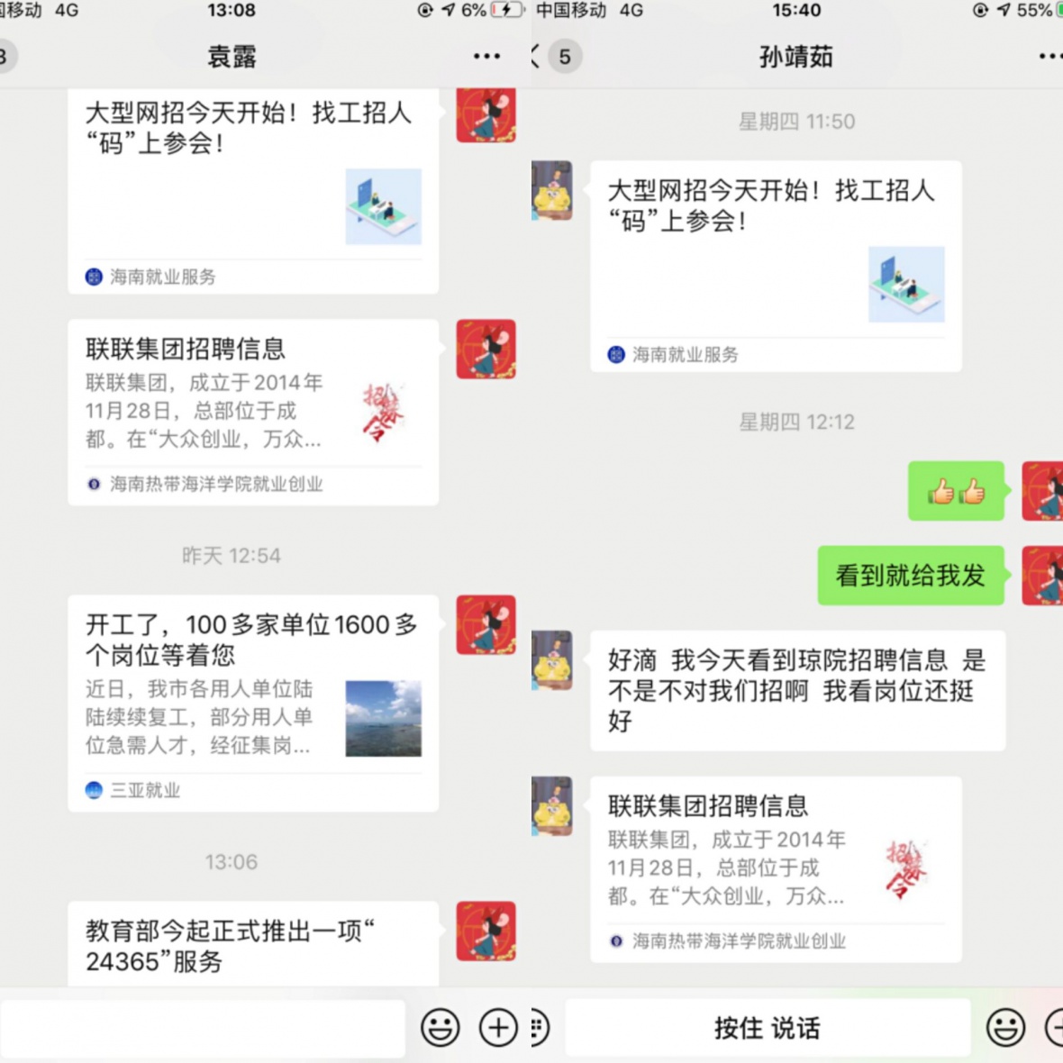 始终坚持“就业服务不打烊、线上招聘不停歇”全面排摸、分类引导;空中宣讲、线上培训;疫情调研、在线咨询;“一生一策”精准管理,以及精挑细选的海量招聘信息……思想导师们每个人都“手不离机、心不离岗”,尽自己最大的努力为毕业生分忧解难。
