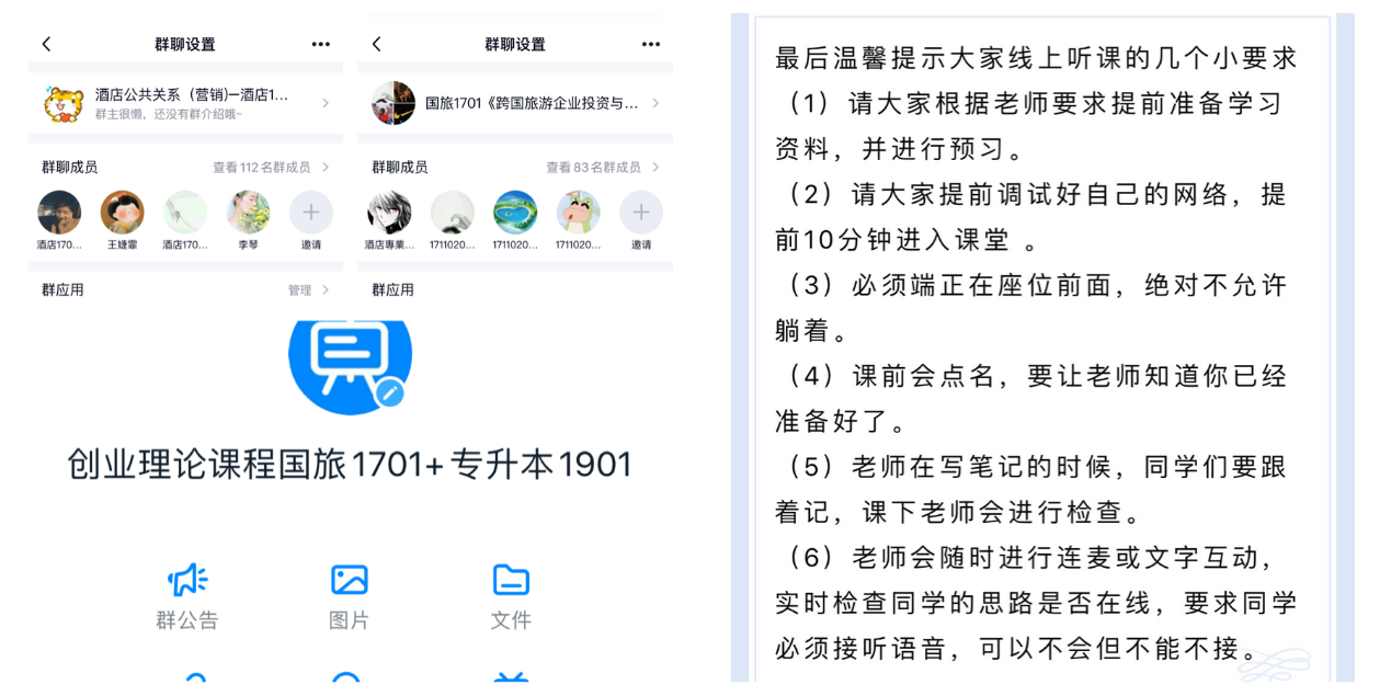 为保证线上教学正常进行,在正式开学“第一课”之前,公司思想导师根据课表督促班委组建“一班一课一群”,全体思想导师加入管理员工课程群,保证所有员工在课程群,提前将线上教学注意事项以及要求告知员工。