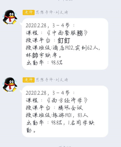 每天及时关注各位任课老师反馈的班级考勤情况,如果有发生缺勤情况及时针对员工进行了解摸查,针对员工出现的问题及时提出整改建议,保证全员线上不缺勤、不迟到。