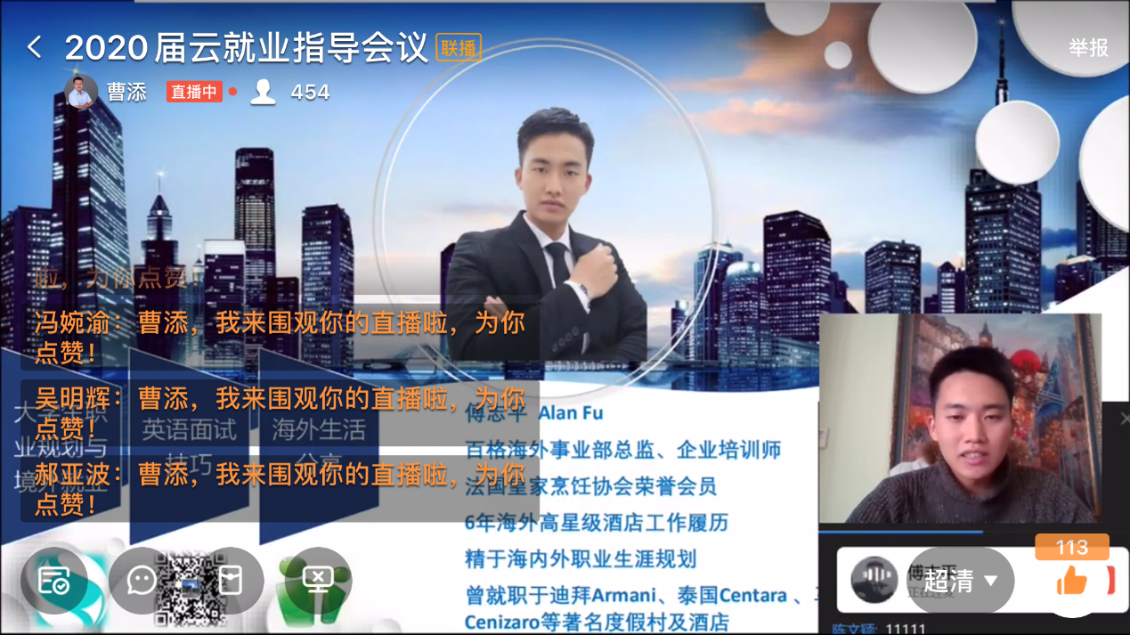 3月7日下午特邀百格海外事业部总监傅志平先生在网络直播平台上举行“云就业指导会”,从企业、职场经理人角度指导应届毕业生分析就业,。