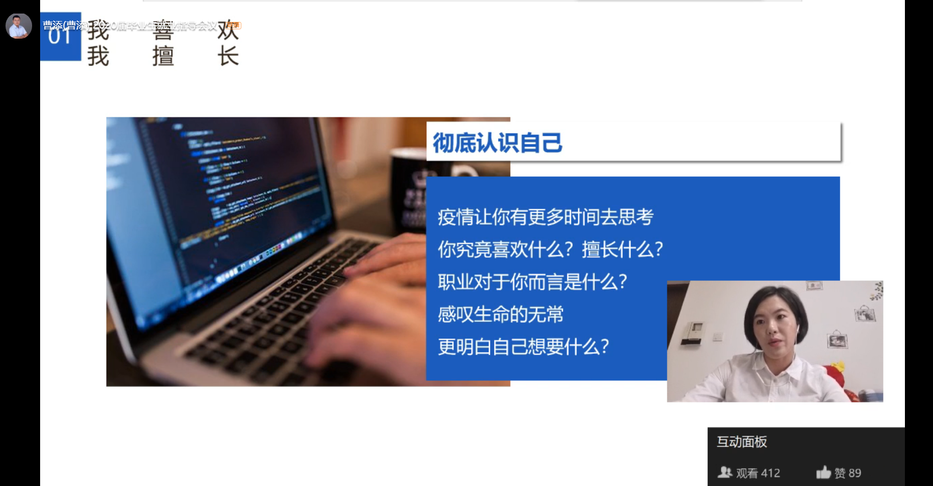 社会路是一条漫长而又艰难的路,疫情让人们有了更多的时间去思考:你究竟喜欢什么?职业对于你而言又是什么?李慧老师教导员工,与其感叹生命的无偿,更应明白自己想要什么,擅长什么。对于公司员工而言,你是否了解疫情给旅游和酒店业带来损失万亿,77%酒店停业或空巢的伤害。2003年非典型性肺炎旅游业三个月恢复原貌,却激发了淘宝等电商平台,2020年恢复期或许会更长甚至到2021年才会恢复。这意味着对于毕业生而言将是机会与威胁并存的一年,要拓宽眼界,可以将考研、电商、国企、公务员等跨界行业纳入选择,并且做好长期待业的心理准备。