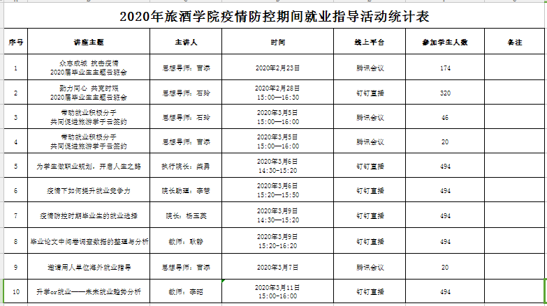 2020年金沙js5588疫情防控期间就业指导活动统计表
