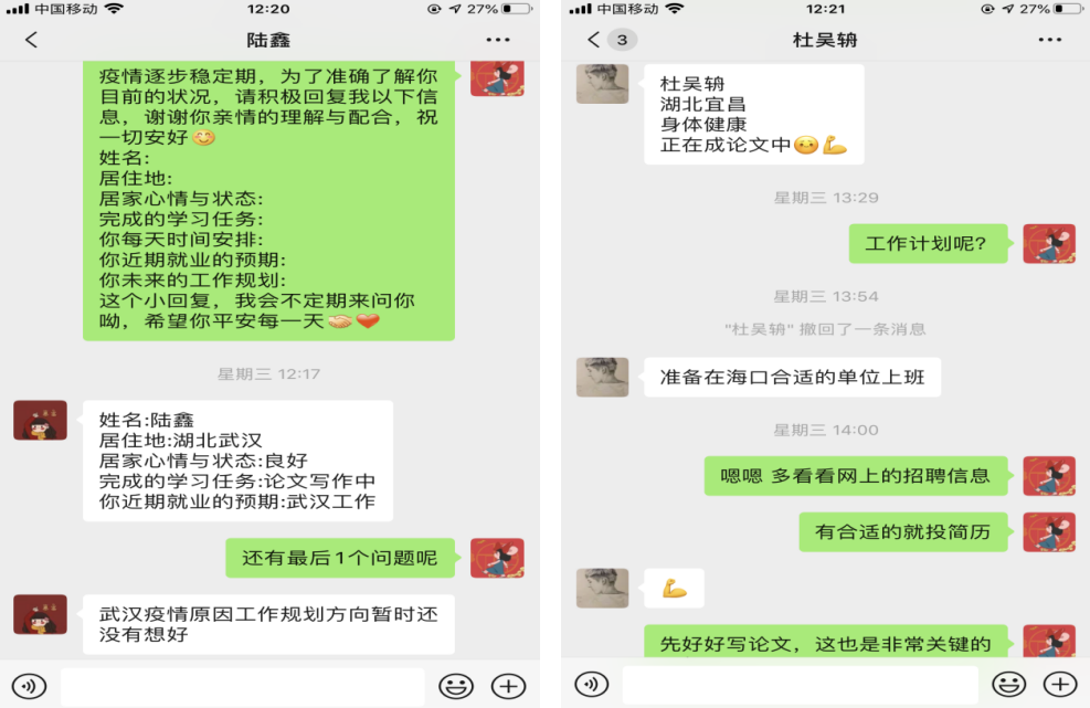 对湖北籍毕业生们的心理辅导工作持续开展