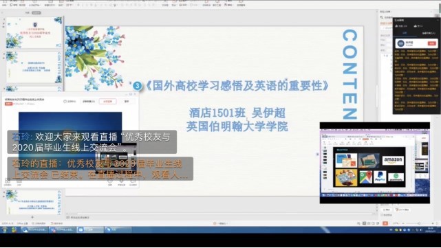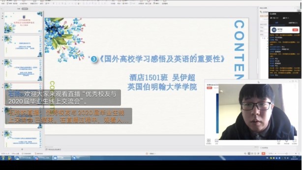 临近毕业,公司领导和老师十分重视毕业生的就业问题,由衷希望2020届毕业生能够顺利就业,公司诚挚地邀请现就读于英国伯明翰大学的15级员工吴伊超与应届毕业生进行线上交流,思想导师石玲和部分16级员工参加此次线上交流会。