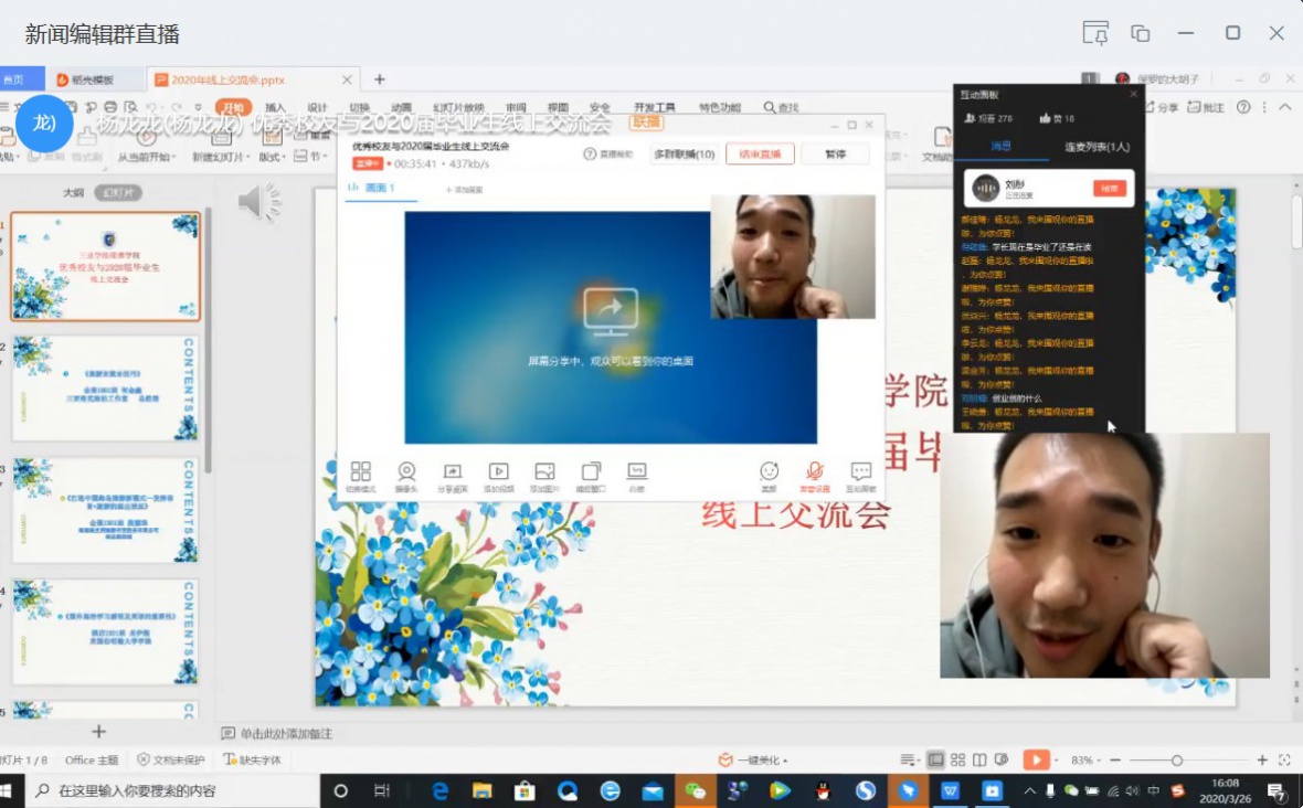 随着毕业季的到来,为帮助公司2020届毕业生更加明确未来的发展方向,公司特邀高尔夫14级优秀员工刘彤,燕山大学在读硕士研究生,与员工们进行线上交流分享,公司2020届毕业生积极参与。