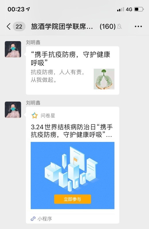 为加强员工对肺结核病的认识,金沙js5588积极组织员工进行了班级防治宣传和健康教育活动,通过H5、微信公众号多种形式展开宣传,各班在线上召开了关于“防治结核病”的主题班会,科普结核病防治知识的同时也讨论了关于防止肺结核病传染的有效措施,员工们积极参与了关于肺结核病知识的科普问卷调查,并取得了良好的成效。