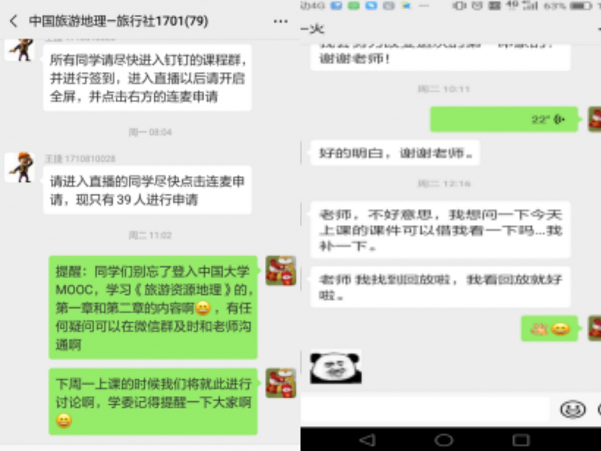 通过不断地测试和试讲,以达到最佳的网络教学效果,胡雨凯老师选择了钉钉,腾讯会议和微信作为网络教学平台。钉钉作为主要网络教学平台,特别是它的直播回放功能,可以帮助同学们反复观看知识难点,回看直播视频进一步理解相应知识;腾讯会议作为翻转课堂平台,老师和同学们可以就某一论题尽情探讨和沟通;微信作为学习任务发布和答疑平台,同学们可以随时就相关课程知识疑难点,与老师进行探讨。3大平台组合,达到最佳网络教学效果。