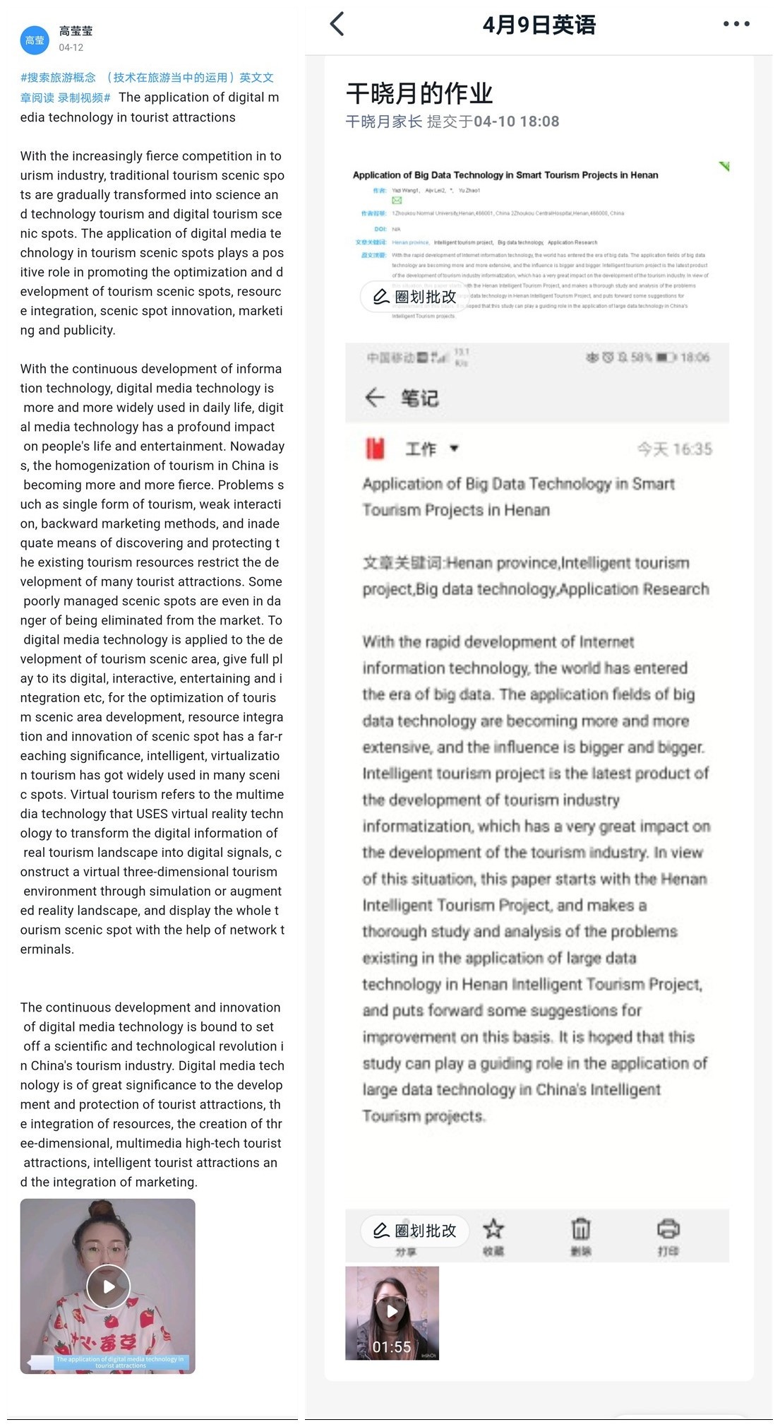 “震惊!上着英语课一不小心却好像成为了一名英文UP主,画风逐渐跑偏,面对镜头越来越放松,剪辑技术越来越纯熟,花式字幕得心应手,图片视频素材应用样样不在话下”,这是很多上了八周旅游专业英语同学们的心声,这也是旅游专业英语2课程主讲教师余燕伶的目的。