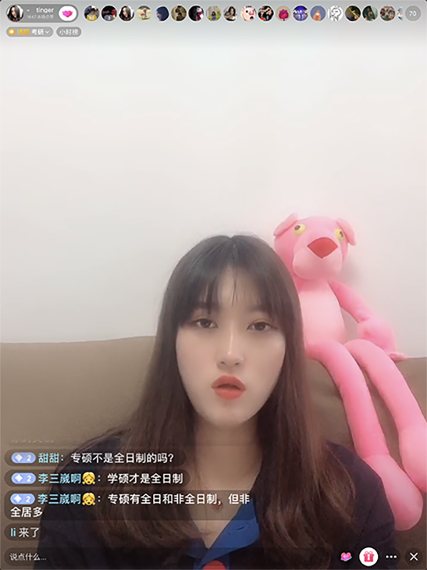 员工李婷婷在直播间进行考研分享
