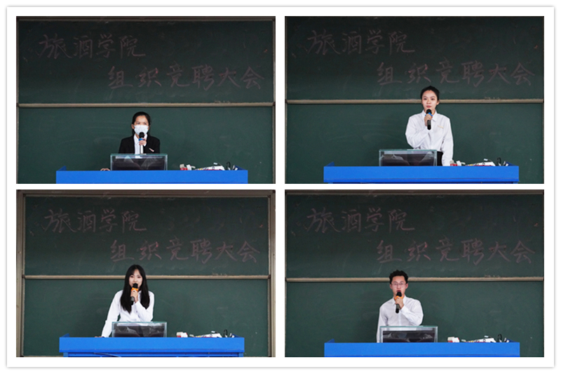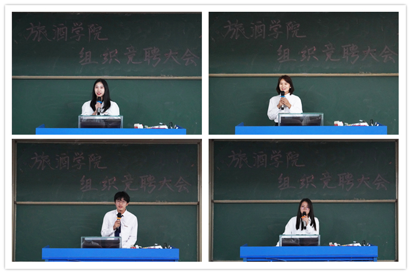 组织竞聘大会旨在鼓励四大组织成员积极参与竞选,发掘组织中的潜在人才,不断推动组织进步,优中择优,增强组织核心优势。本次大会依照团委、员工会、自律委员会、通讯社的顺序依次进行竞聘宣讲。四个组织的竞聘成员分别从工作成绩、工作不足、工作思路、未来规划等方面竞选宣讲,表述自己对工作的热爱和自身积极负责的工作态度。会议期间,团委副书记李琴对竞聘干部进行仔细地记录点评。