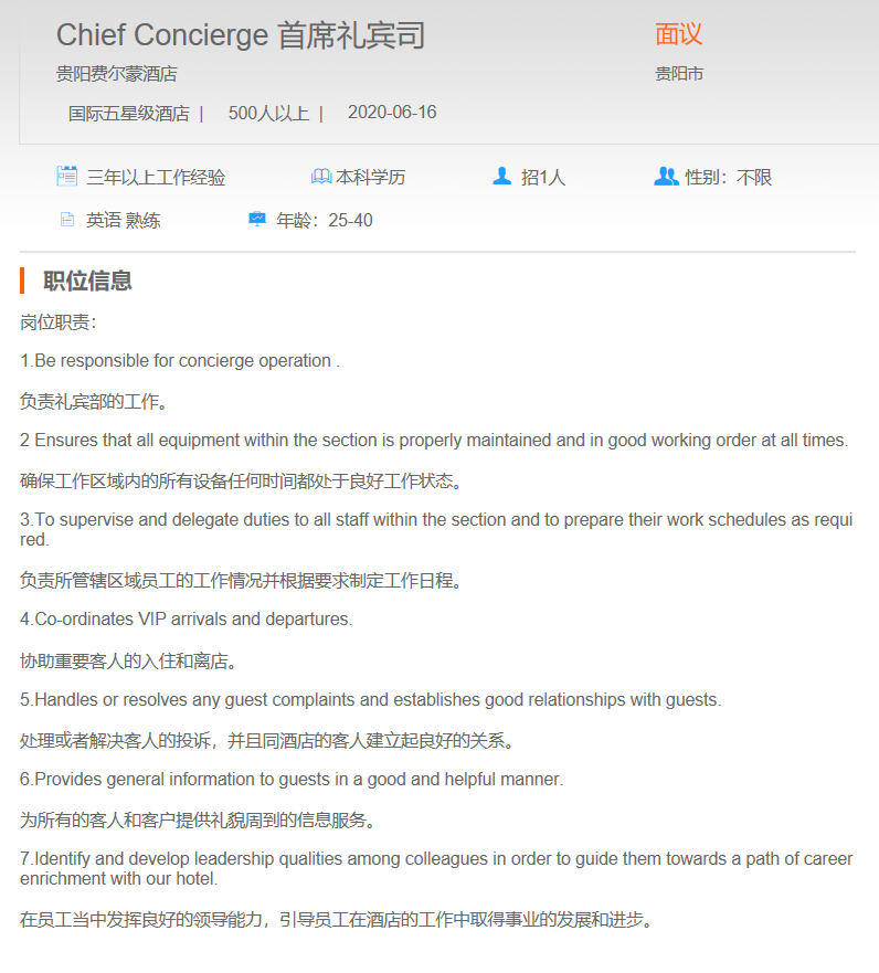 贵阳费尔曼酒店 首席礼宾司