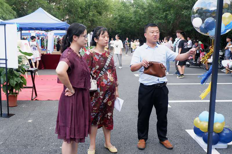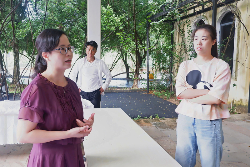 党总支副书记王翔与团委副书记吴小柳、思想导师石玲讨论迎新事项