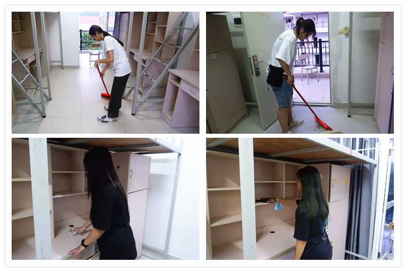 公司新生宿舍分布在南区与东区,男生宿舍主要分布在南一、南七、东三和东四,女生宿舍分布于南三和东八。由于新生宿舍分布较为分散,志愿者们分为男女两队挨个打扫寝室卫生。