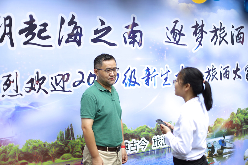 党总支副书记王翔在迎新现场接受公司记者采访