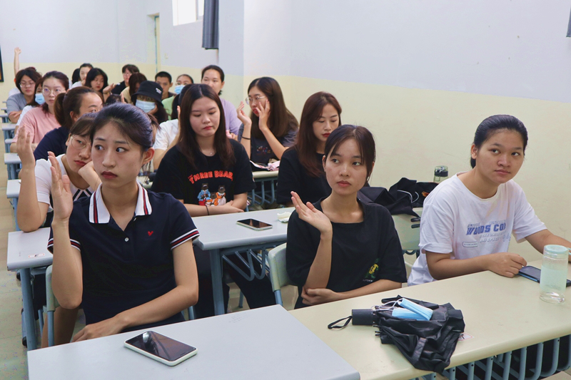 酒店专业讲师王丹鹤提出,在酒店管理专业学习和实习过程中,专业技能与可迁移技能非常重要,除了课本所学,本专业最可以带给一个人气质的改变与提升。在最后的互动交流环节,耿佳老师与龚慧老师热心解答,新生认真聆听并表达自己的想法。