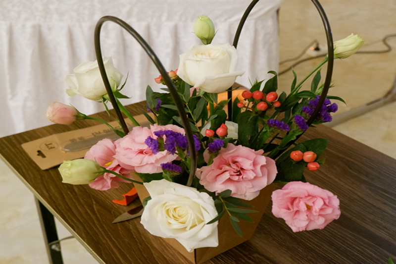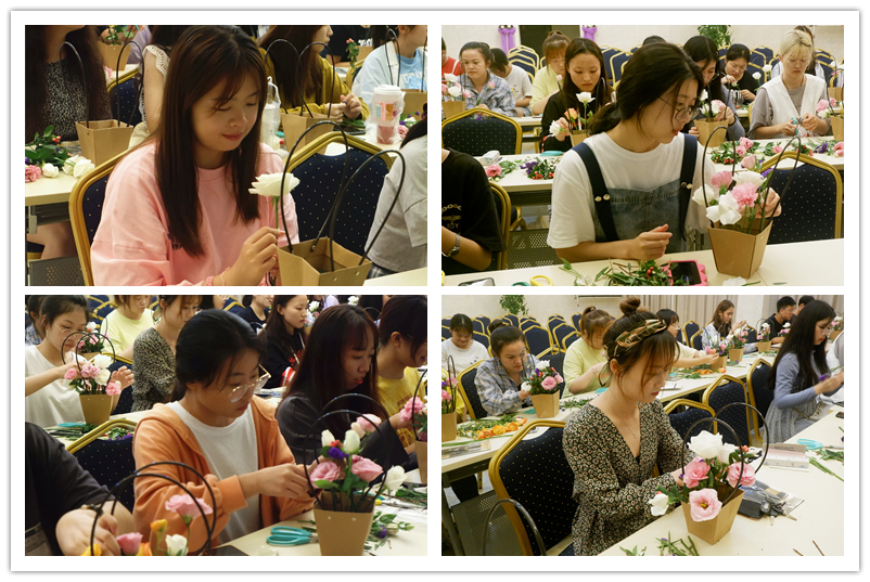 在最后的互动环节,员工们亲自动手,自行发挥,张南老师给予了指导并提出了意见和赞扬,她还鼓励员工们在插花的过程中表达心情与自我,带着对花艺的热爱,陶冶情操,丰富生活。在社会压力较大的情况下,学习生活之余,希望插花能给予员工们一种由内而外的安宁与恬静,让员工更好地去学习与生活。
