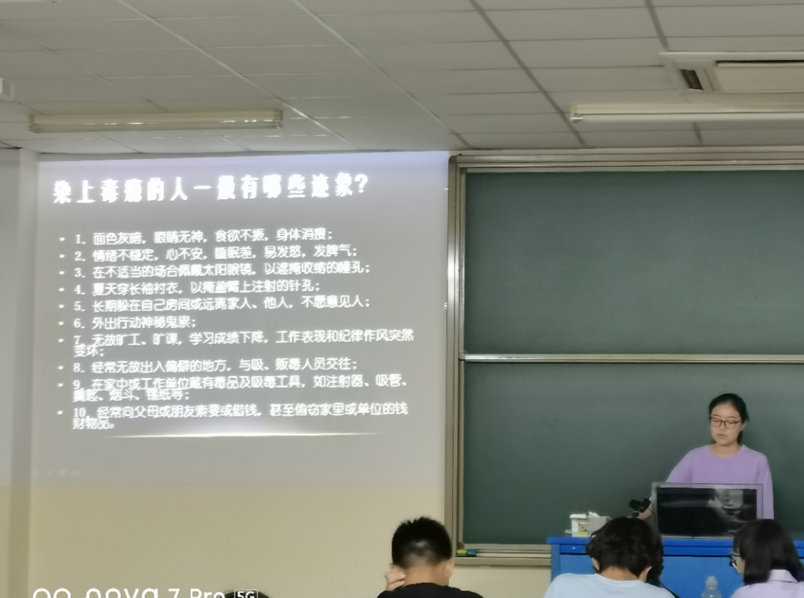 以“预防毒品”为主题的班会由团支书主持召开。其主要向同学们介绍了常见的几种毒品,例如鸦片、大麻、海洛因、吗啡等,并告诉同学们要远离毒品,珍惜生命。