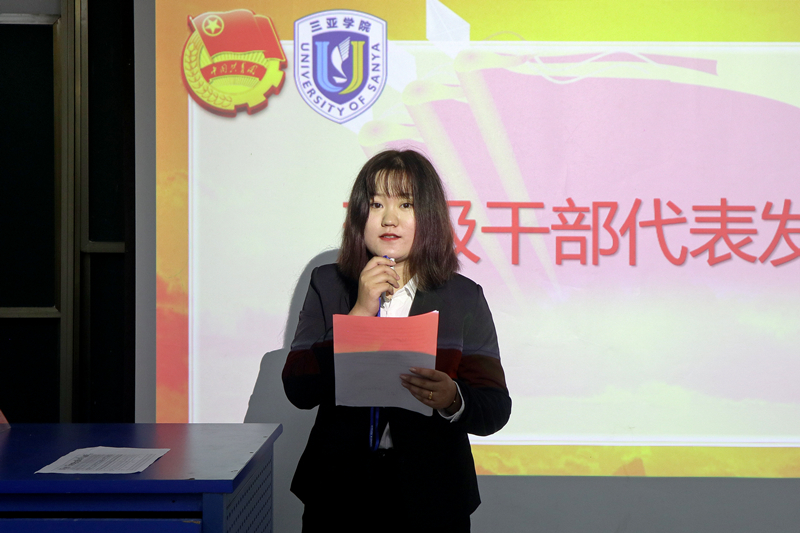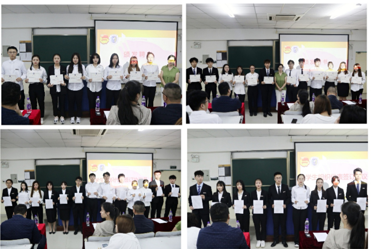 大会在主持人的致辞中拉开了序幕,在介绍员工组织的宗旨及各个参会成员后,由团委副书记吴小柳宣读新一届金沙js5588员工干部任职决定名单,随后为副部级以上的员工干部发放聘书,各员工组织干事代表上台签订金沙js5588员工组织成员就任协议书。紧接着,员工组织负责人代表扈逸飞进行发言,扈逸飞同学从“追求”二字切入,他表示作为员工组织成员需要拥有正确的定位并且明确组织宗旨,秉持优良传统、创新工作模式、服务员工、服务公司。班级员工代表徐梦迪同学也同样表示在为员工服务的过程中要以员工为中心,了解员工诉求,她还认为作为班级干部,既是管理者,也是服务者,为公司服务、为老师服务、为员工服务,并协助老师维持良好的学习氛围,营造和谐校园环境,成为老师、同学及公司之间的沟通桥梁。