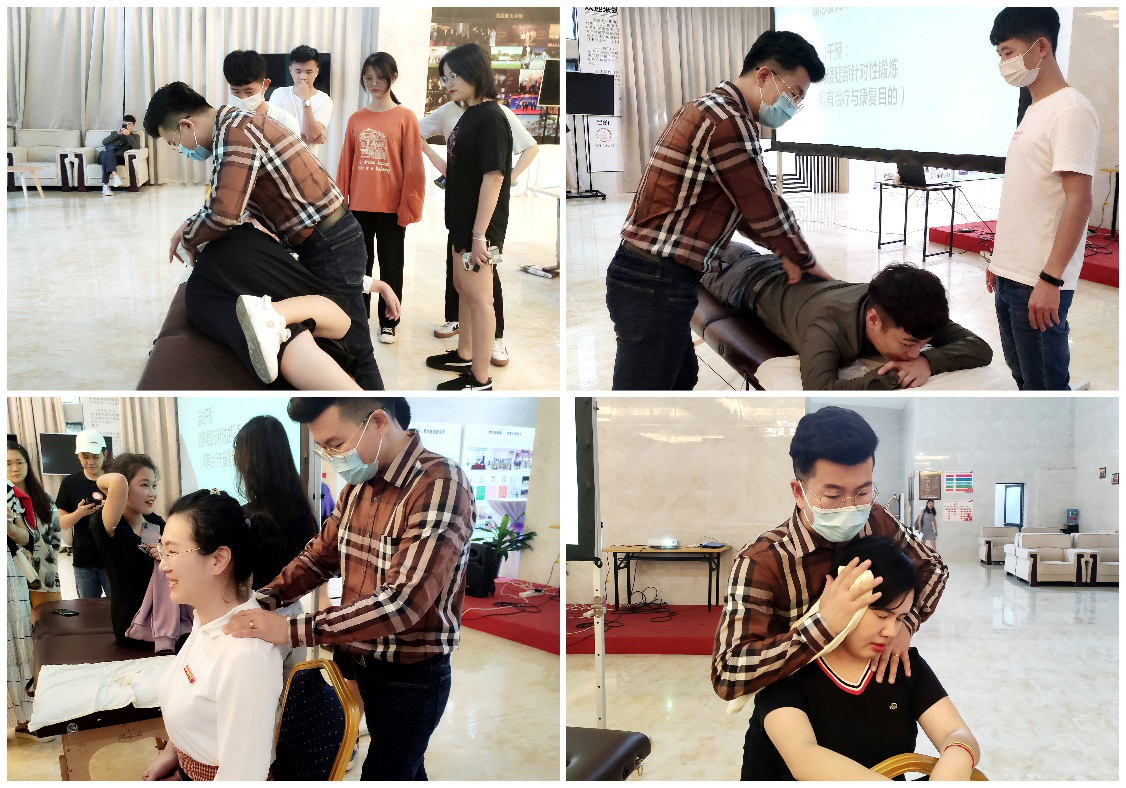 讲座的最后,崔文医生授予师生们一套缓解脊柱疲劳的运动操并为师生们进行义诊。师生们积极参与义诊,并与崔文医生交流探讨了有关如何预防脊柱疾病的知识。