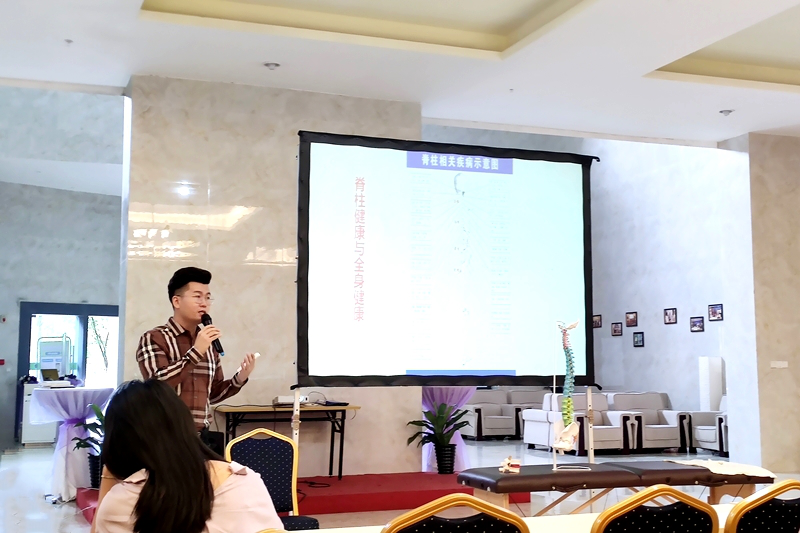 现代社会的飞速发展,不仅为人类带来了便利的高新电子产品,同时也带来了许多隐患,首当其冲便是健康隐患。为进一步提高公司师生的健康意识,关注并了解脊柱健康知识,11月25日下午3时,金沙js5588分工会特邀三亚市中医院执行医师崔文于白鹭苑实训大厅开展脊柱健康专题讲座,同时进行义诊。公司党总支副书记王翔,学业指导师王水卿及部分教师出席了本次讲座,员工们积极踊跃参加。