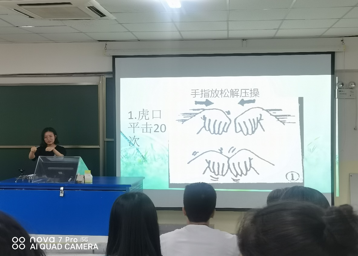 活动中向同学们讲解了国际心理健康标准、老员工常见心理问题、解决方法等理论知识,并加入职业性格测试、手指放松操、猜词小游戏等互动环节。