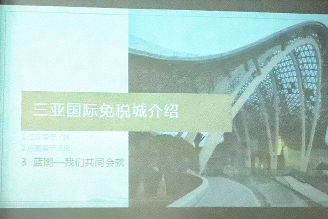 招聘会伊始,陈先生向员工们做了简单的自我介绍,随后就开始介绍中免集团三亚市内免税店有限公司的发展历程,三亚免税国际城是全球最大的单体市内免税店,国际大牌旗舰店云集,曾有门店的销售额创下国际奢侈品牌的全球记录,不仅带动三亚市海棠湾旅游区的发展,而且助力海南国际旅游岛的建设。