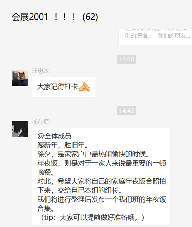 春将至,人也新,爆竹声声,岁时更替。春节已然到来,过往已成序章,在农历新春之际会展2001班组织了同学们进行手写新年寄语、大年三十年夜饭分享以及拍摄新年祝福视频活动。不仅征集了同学们对2021年的一个又一个期盼,还有对家人与家乡的温情,更有对朋友对家人的关心。